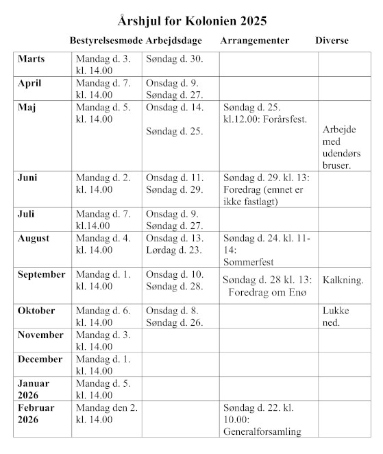 Der er arbejdsdage den anden onsdag og sidste søndag i hver måned med start den sidste søndag i marts og slut den sidste søndag i oktober.